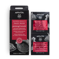 EXPRESS BEAUTY face mask with pomegranate, the symbol of well being in the Mediterranean zone known for its antioxidant action, offers a direct sense of revitalization to the skin.