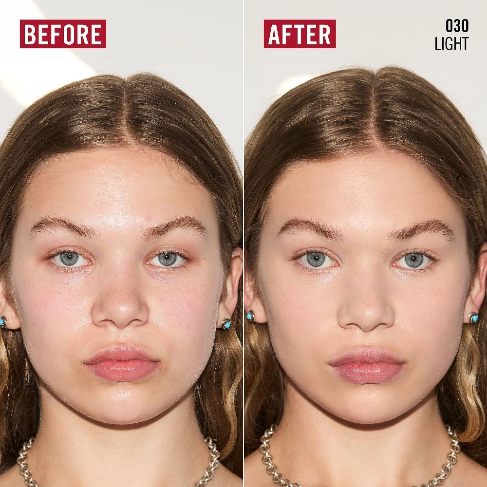 Step 1: Using fingertips or a concealer brush, lightly tap and blend out the formula for a seamless finish.