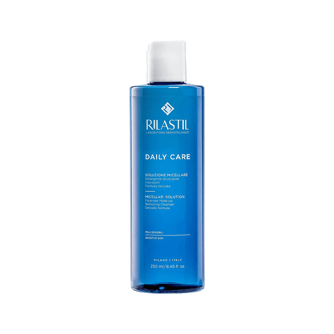 Rilastil Daily Care Micellar solution Detergent-up remover for face and eyes, suitable for all skin types, even the most sensitive and prone to redness. Can be used to remove all types of makeup from the face and eye area, or as a gentle cleanser for dry, sensitive or irritated. RESULT Skin cleansed, soothed and hydrated. FEATURES It cleanses and purifies the skin, preserving its moisture and elasticity. It soothes from any redness, tingling and burning. Leaves skin soft, toned and smooth. The pH of the product is buffered and isolacrimale avoid burning eyes. HOW TO USE Pour a proper amount of the product on a wad of cotoneo on a makeup remover disk, then clean the face, eyes and neck. Gently dry. You do not need rinsing. INDICATIONS Suitable for all skin types. For its particular delicacy and for its soothing properties is also suitable for the most sensitive and intolerant to common facial cleansers. PLUS dermatologically tested microbiologically tested Ophthalmologist-tested Tested for Nickel, Cobalt, Chromium, Palladio and Mercury * hypoallergenic ** pH buffered isolacrimale No SLES and SLS without alcohol fragrance Paraben preservatives Without colorings Without grain derivatives * Each less than one part per million. Small amounts may be responsible for skin sensitization. ** Product formulated to minimize the risk of allergy.