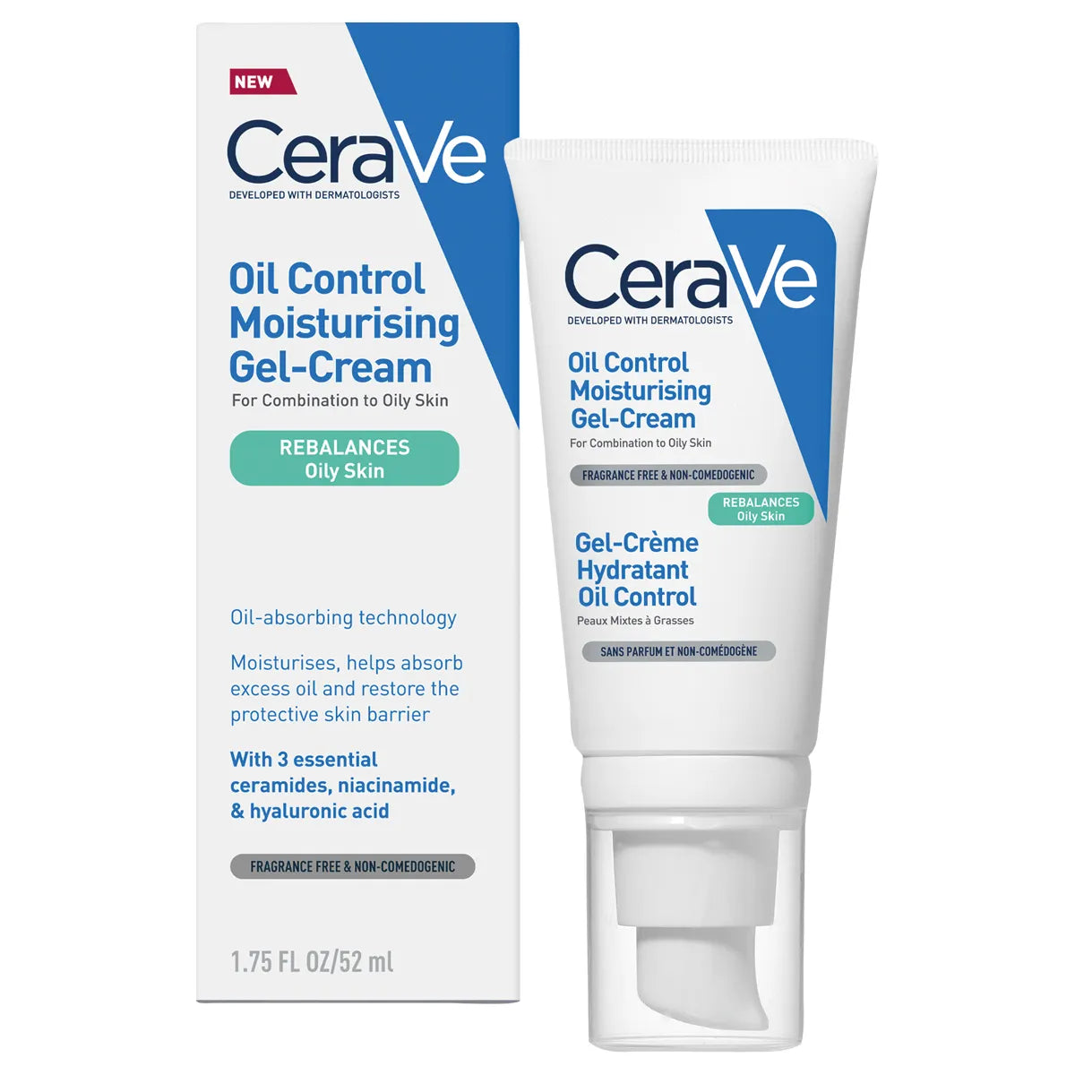 A daily lightweight moisturising gel-cream with Oil Absorbing Technology, Niacinamide, Hyaluronic Acid & 3 Essential Ceramides to help absorb excess oil while maintaining a healthy skin barrier for all day hydration, without the shine. Developed with dermatologists, for oily to combination skin.