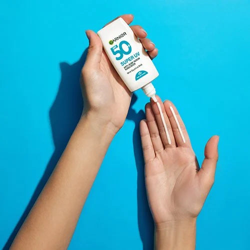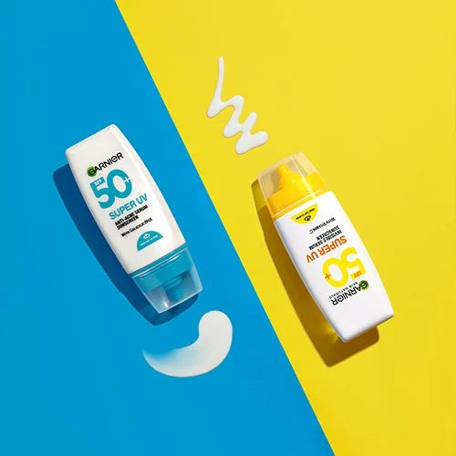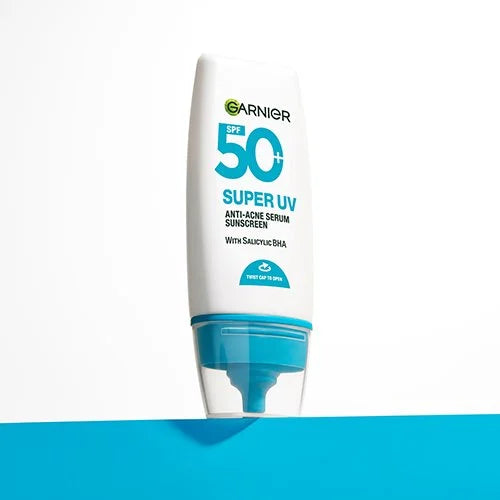 Garnier Super UV Anti-Acne Serum delivers 12-hour oil control and broad-spectrum UV protection, specifically designed for acne-prone skin. Its non-comedogenic, water-resistant formula prevents pore clogging and seamlessly integrates with makeup, helping to minimise sun damage and acne breakouts.