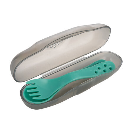 Do you want to give your child a meal while traveling or on a walk? Travel cutlery set for children is the perfect solution for convenient feeding outside home. The set contains a fork and a spoon enclosed in a practical case is ready to use wherever you want. The case prevents the accumulation of bacteria, thanks to which the cutlery stays clean and its use is hygienic and safe for the child. After eating a meal, it allows to carry the set without the risk of dirtying your bag or backpack. The rounded edges do not irritate the baby's delicate gums, so they will also be useful in the first attempts to eat independently. The cutlery set for children is made of safe material - no BPA or other harmful substances were used in the production. Canpol babies travel cutlery set for children is available in several color variants.