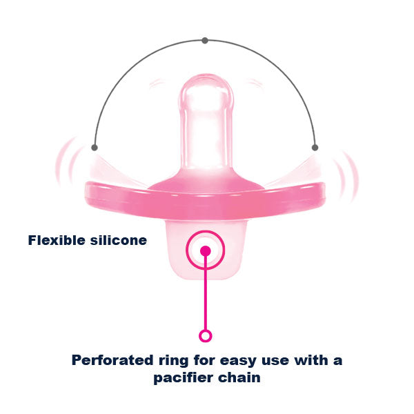 Need a soothing solution? This soft, round pacifier keeps your baby comfortable while allowing easy airflow. Includes a cover for added cleanliness. -BPA FREE -PVC FREE -Clinically tested Available in 2 colors: pink and blue