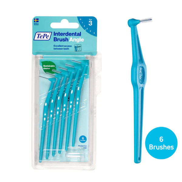 TePe Angle™ is designed to clean the gaps between the teeth, where a regular toothbrush is unable to reach. This interdental brush has a long handle and an angled head for easier access between the back teeth. Use daily to keep gums and teeth healthy and fresh.