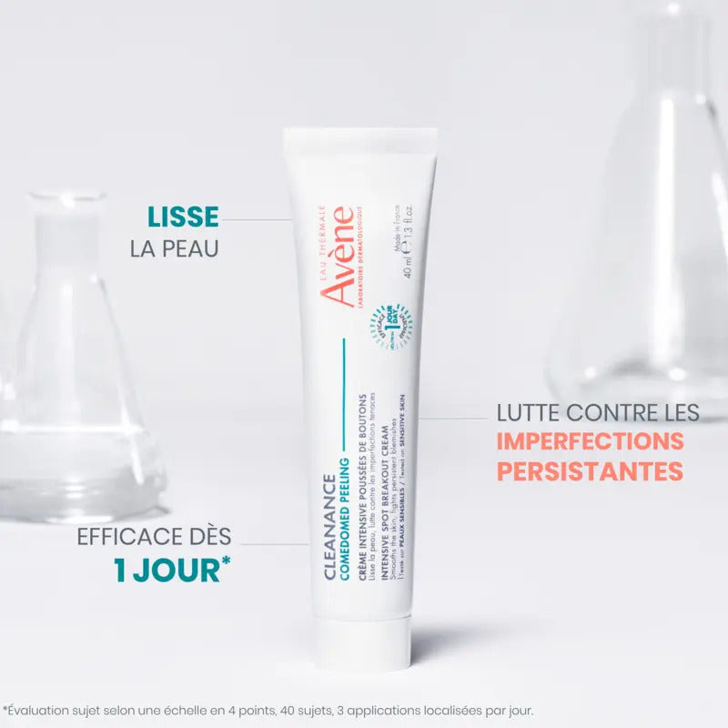 Comedomed Peeling Cream is the new ally against breakouts. It targets all visible imperfections of acne-prone skin with a unique and ultra-effective formula thanks to the combination of dermatological active ingredients: Glycolic Acid, exfoliates and stimulates cell renewal for a new skin effect thanks to its keratolytic action. The Retinoid Booster, promotes the resorption of spots and the reduction of residual marks thanks to a patented** combination of Retinal, the most effective form of Vitamin A and Comedoclastinâ˘. It is applied in the evening to a clean, dry face from the appearance of imperfections until they disappear, with a maximum duration of 15 days of use. Its cream texture allows for rapid absorption of the product and a non-greasy finish on the skin.