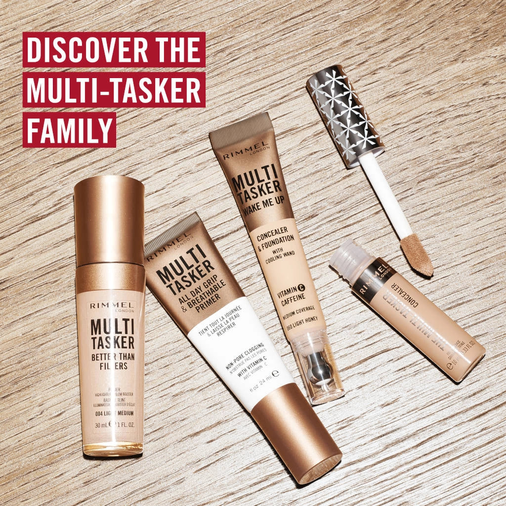 Rimmel Multi-Tasker All Day Grip & Breathable Primer is lightweight and breathable with gel texture and all-day gripping power. Use this vegan primer to prep skin for makeup or use without makeup as a gel moisturiser.