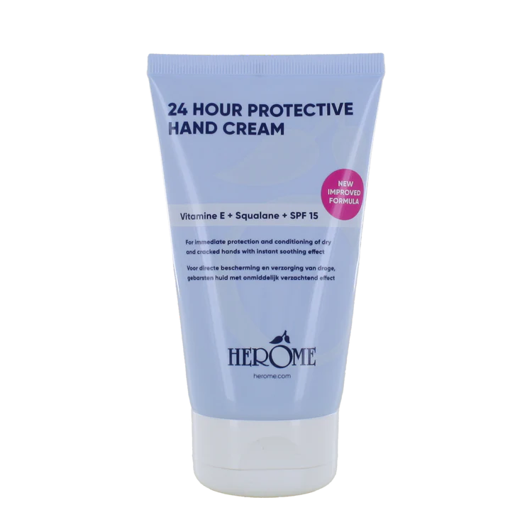 Get velvety-soft hands in an instant with Herome 24 Hour Protective Hand Cream. It provides long-lasting, intensive care, hydration, and protection for your hands, and contains SPF 15 to actively combat skin aging. Now with an improved formula for even better results.