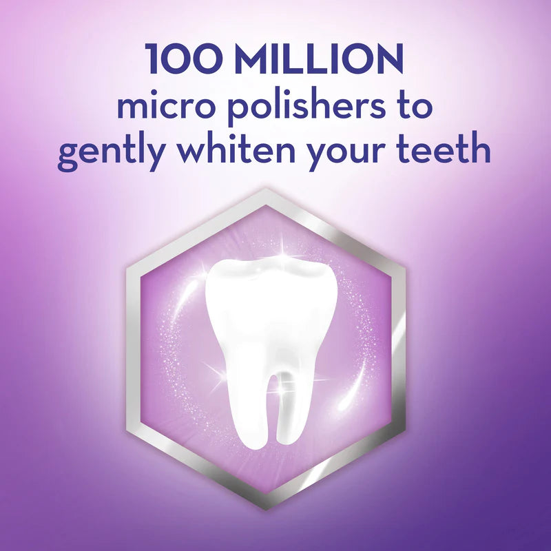 Contains 100 million micropolishers that remove 90% of surface stains and help whiten your teeth even more