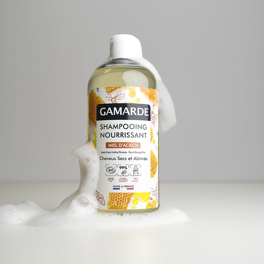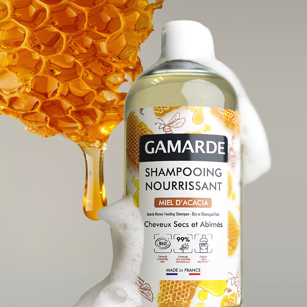 Designed for dry hair, this shampoo nourishes your hair with the beneficial properties of Acacia Honey and soothing Gamarde-Les-Bains Thermal Water. Soft and delicately scented, your hair will radiate beauty. Formulated with a naturally derived, scalp-friendly surfactant made from coconut.