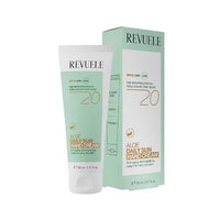 Revuele Aloe Daily Sun Hand Cream SPF20. Soothing hydration combined with sun protect filters work together to provide photoaging and dark spot prevention for the delicate skin of the hands. Enriched with nourishing Aloe Vera, the formula works to deeply nourish and repair. SPF 20 provides sun protection for the constantly exposed skin of the hands. Velvety-soft texture absorbs quickly, leaving hands feeling replenished and comforted without greasy residue. Ideal daily solution for very dry skin