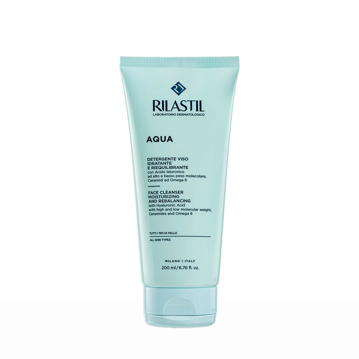 Rilastil Aqua is the complete product line for skin moisturization, to keep your skin fresh, tonic and to prevent wrinkles. For an effective moisturizing action, the Rilastil Aqua line envisages the daily use of the cleanser combined with the face cream (LEGERE for mixed-oily skin or OPTIMALE for dry skin) and with the mask twice a week. The recommended treatment is able to restore the proper level of skin moisturization (Hyaluronic Acid with high molecular weight for superficial moisturization and with low molecular weight for deep moisturization) and make the face skin bright and soft (Evening Primrose Oil with Omega 6).