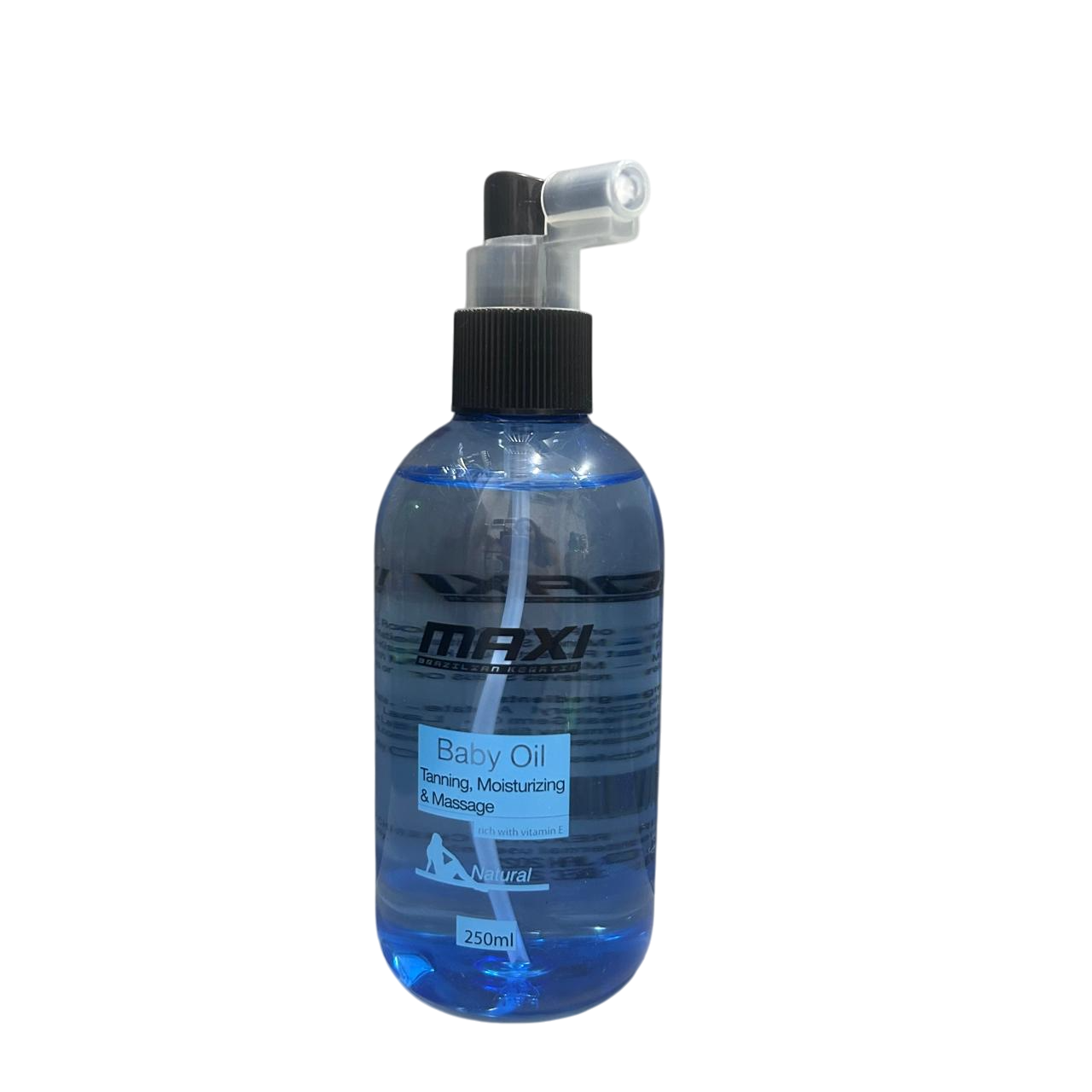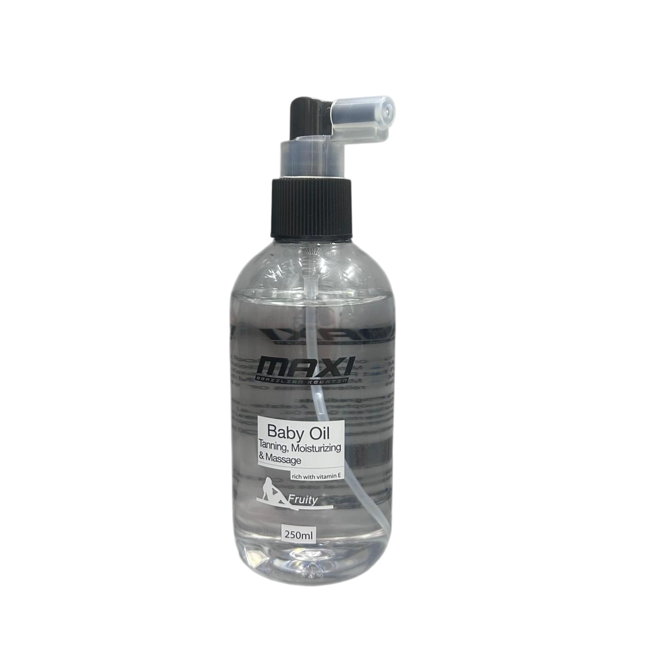 Moisturizer to Treat Or Prevent dry, rough, scaly, itchy skin & minor skin irritations. Ideal to achieve that perfect sun-kissed bronze color of tanned skin. Massaging with Maxi Baby oil alleviates pain & relieves stress or tension