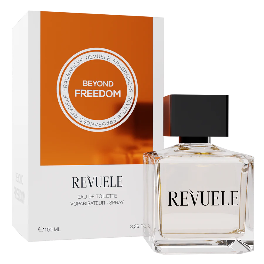Revuele Eau de Toilette Beyond Freedom (100 ml) is an aromatic, floral fragrance for women, featuring top notes of orange and mandarin, heart notes of neroli and jasmine, and base notes of amber and vanilla, embodying optimism and freedom