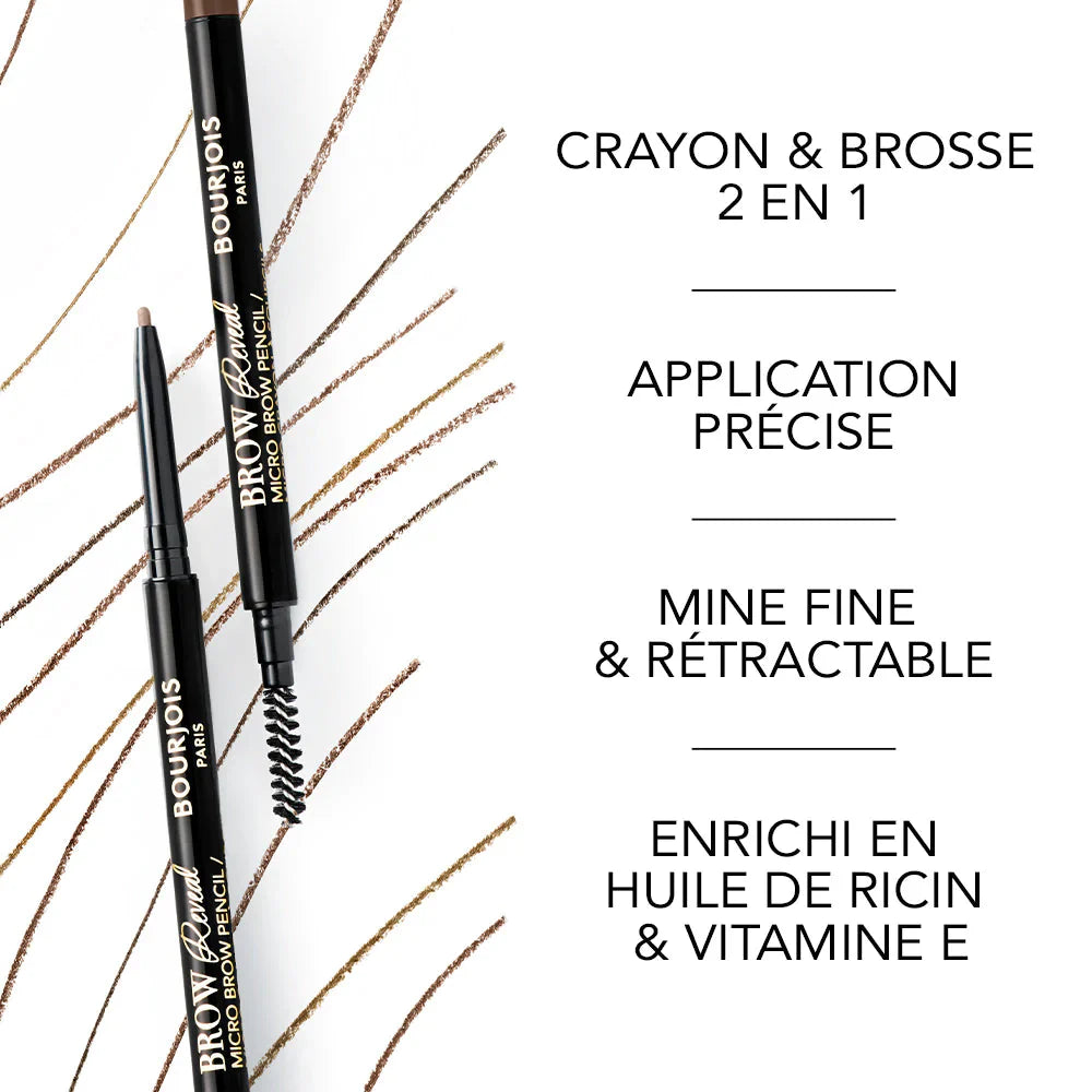 Ultra-precise brow pencil with a retractable tip for full, defined, and filled-in brows. A long-lasting formula enriched with shea butter, vitamin E, and chamomile extracts that is water-resistant.