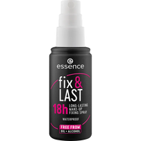 Back and better than ever! Keep your makeup looking fresh all day with essence Fix & Last 18h Long-Lasting Make-Up Fixing Spray. The new and improved spray nozzle ensures an even mist, setting your makeup perfectly. Let it dry, and enjoy up to 18 hours of flawless wear!