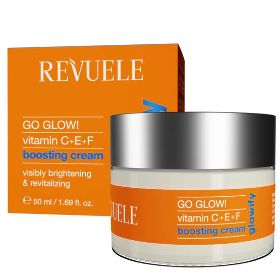 Revuele go glow! Boosting cream is a nourishing face cream enriched with a potent blend of vitamins c, e, and f, designed to revitalize and brighten the skin. Its lightweight formula absorbs quickly, providing deep hydration and a radiant complexion. Ideal for daily use, this cream helps to even out skin tone, reduce signs of fatigue, and enhance skin elasticity.