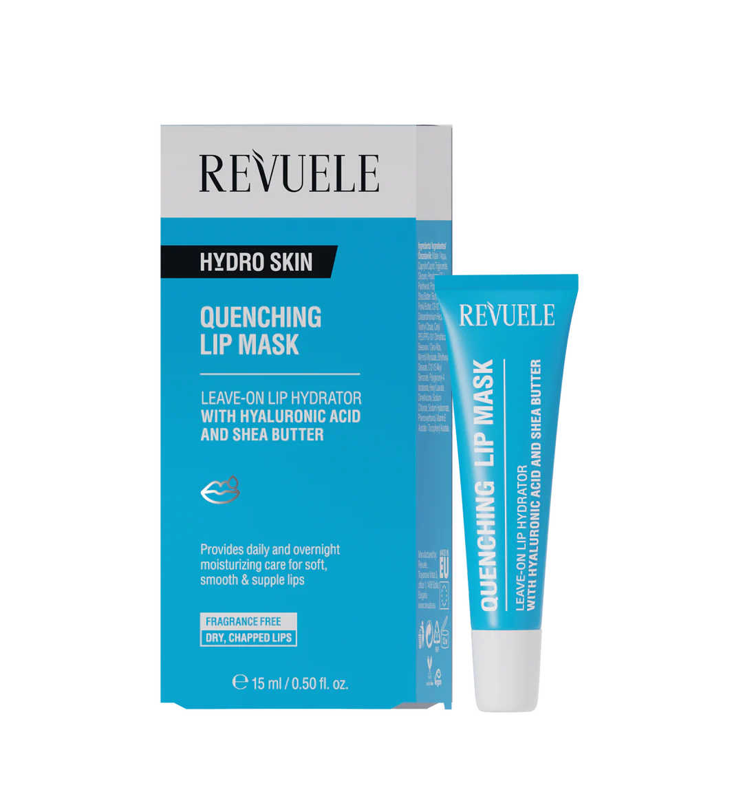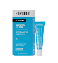 Revuele Quenching Lip Mask. Water-like light and hydrating texture turned into leave-on-lip moisturizer designed to soften lips while on-the-go or overnight. Powered by Hyaluronic Acid and Shea Butter, it leaves skin smooth, plump, visibly healthy and dewy. Thus hydration boost formula is ideal for dry, flaky & chapped lips.