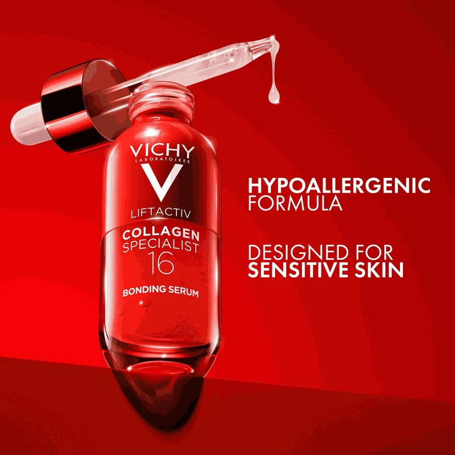 Liftactiv Collagen Specialist 16 Bonding Serum formulated with co-bonding technology [Rhamnose, Peptides, Maitake] to boost skin affected by the loss of collagen and its bonds. This formula targets 16 ageing signs, improving the appearance of: wrinkles, fine lines, firmness, plumpness, contour definition, smoothness, skin texture, tonicity, density, skin strength, skin barrier repair, radiance, softness, suppleness, hydration, evenness. For all skin types.