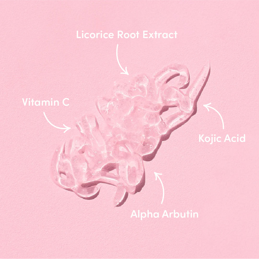 > Hero Ingredients: Vitamin C, Kojic Acid, Alpha Arbutin and Licorice Root Extract