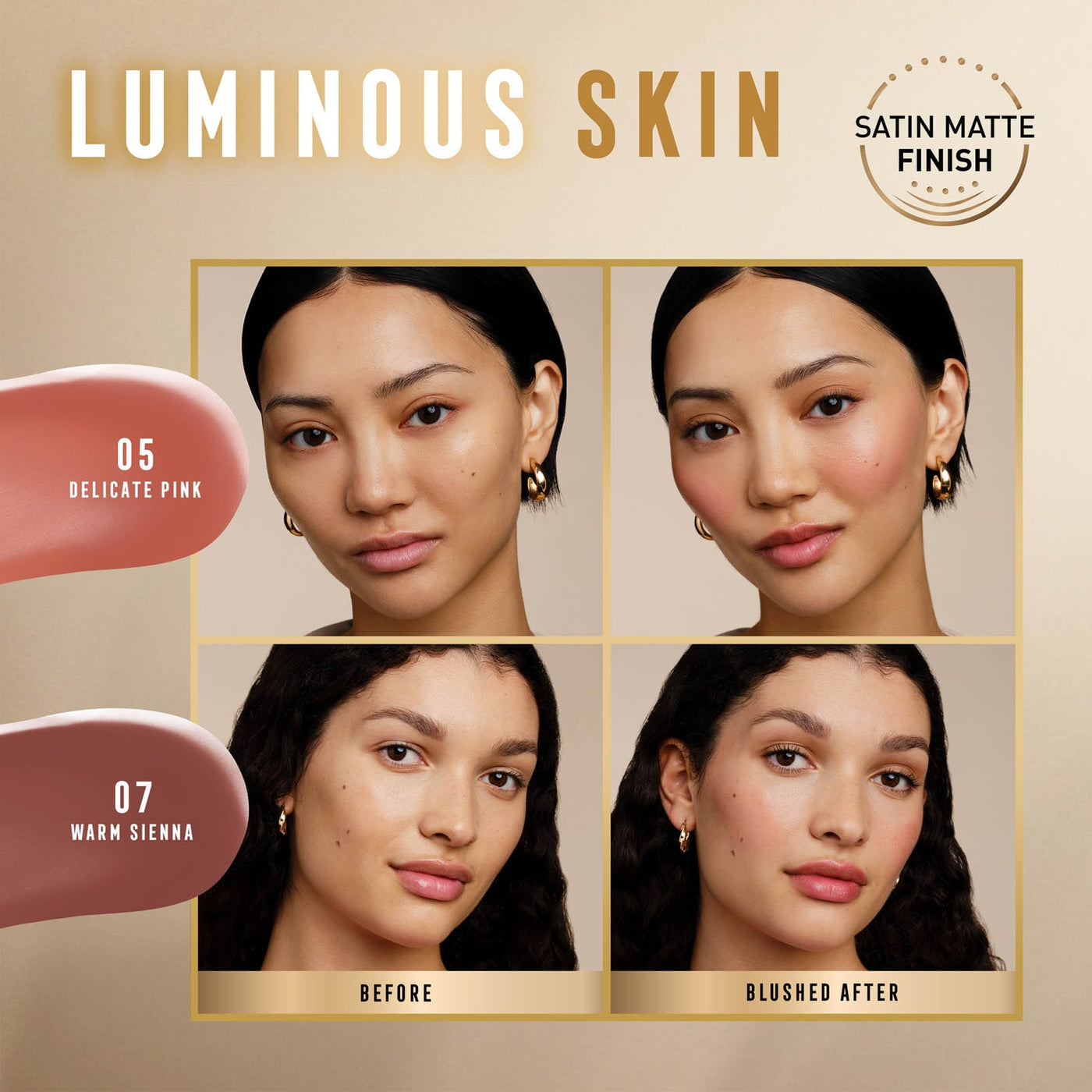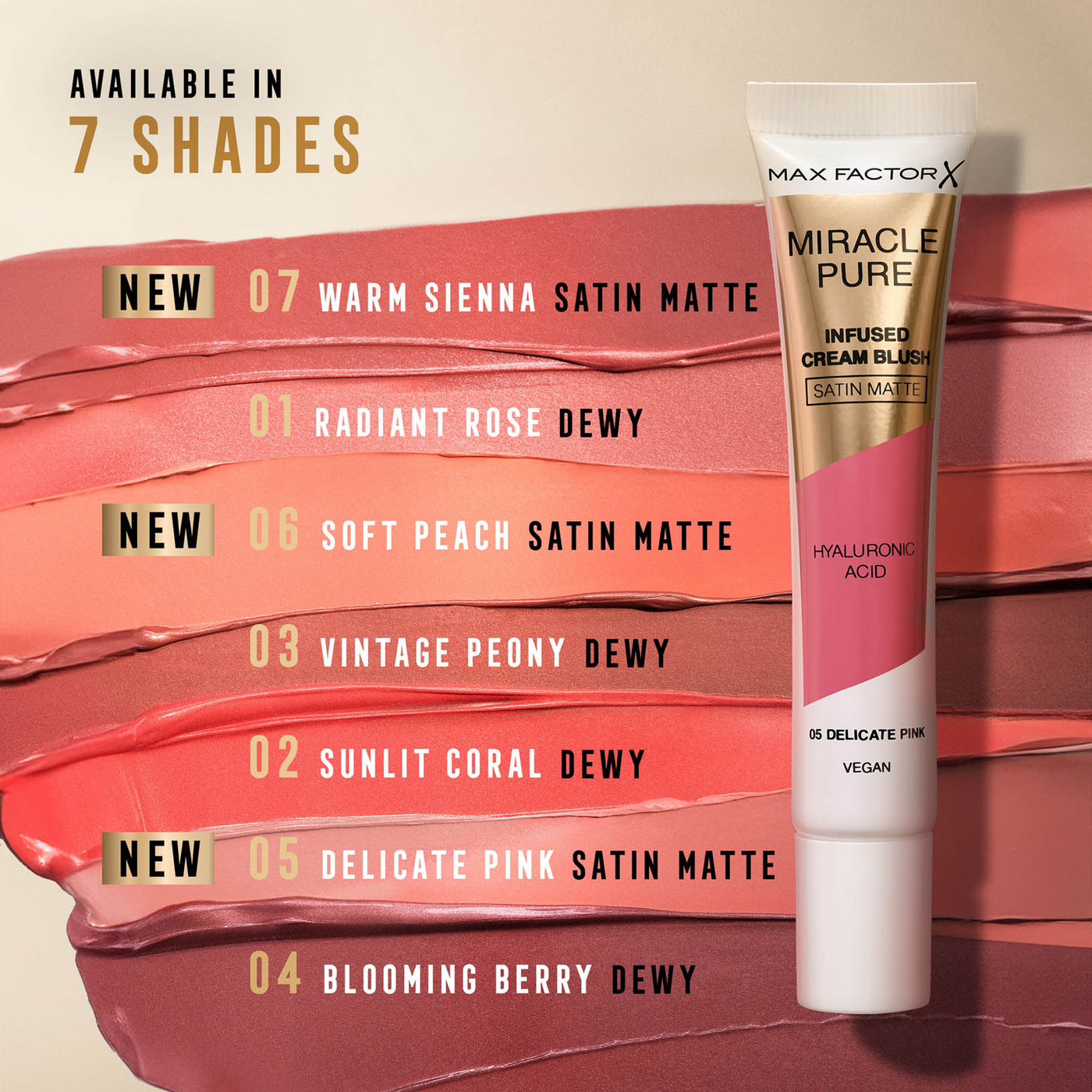 Get a flush of colour infused with care! Max Factor’s Miracle Pure Cream Blush contains a moisturizing complex that plumps and hydrates while adding a buildable glow to your complexion. Infused with hyaluronic acid and squalane, the formula has a lightweight, creamy and silky texture that transforms skin, giving a day-long glow that also leaves the skin looking fresh and healthy.