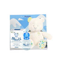 Musti Eau de Soin (50ml) - A gentle, alcohol-free scented water specially designed for the delicate skin of babies. The formula combines a light, refreshing fragrance with mild ingredients, featuring floral and fruity notes along with extracts of honey and chamomile for added comfort and well-being.