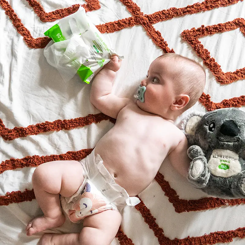 Practical to carry and pack thanks to its foldable handle. This baby box is made of recycled & recyclable cardboard.