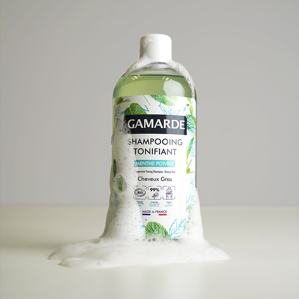 Give your hair freshness and lightness with the invigorating properties of this shampoo, certified organic and 99% naturally derived, containing peppermint and soothing Gamarde-les-Bains thermal water. Formulated with a naturally derived coconut surfactant, kind to the scalp.