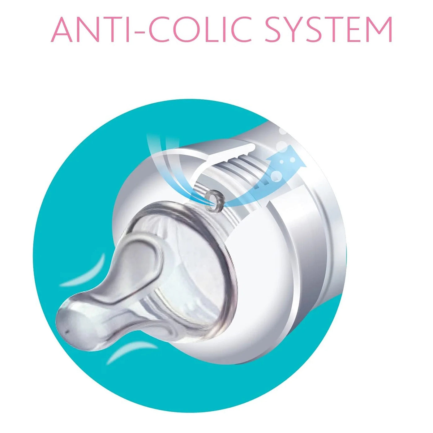 he anti-colic valve at the base of the teat prevents the ingestion of air thus reducing the risk of colic and regurgitation, enabling smooth and relaxed feeding.