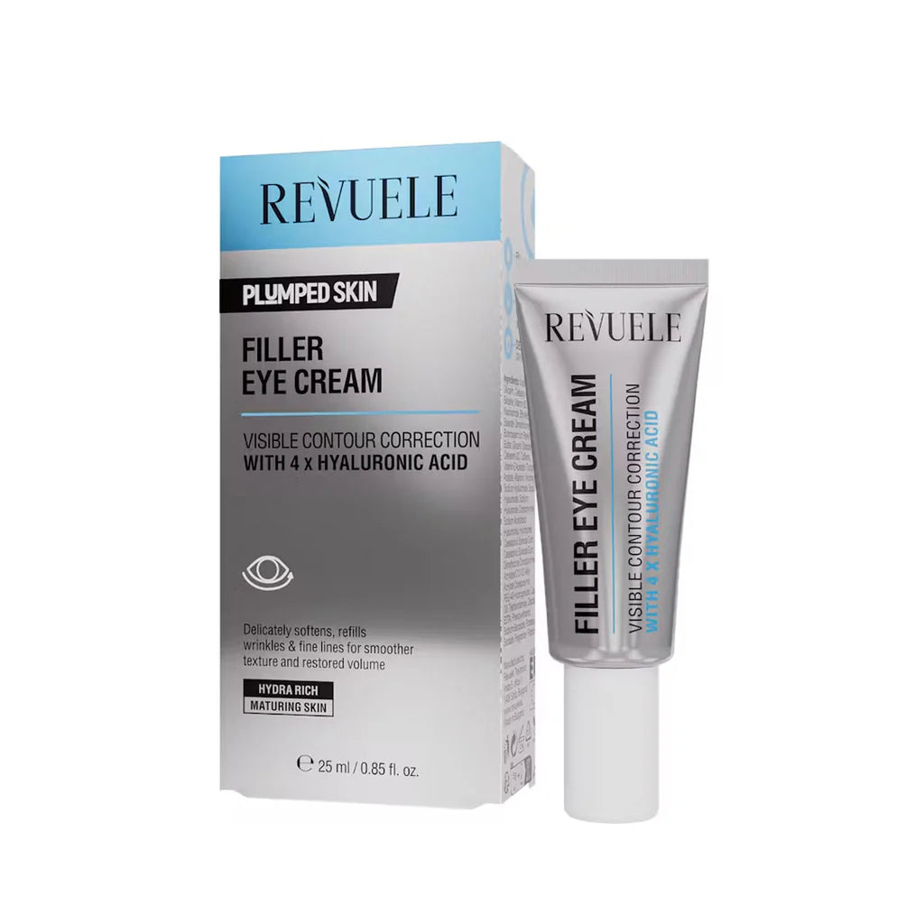 REVUELE Filler Eye Cream, 25 ml β brighten, firm, and smooth your delicate eye area! This targeted cream reduces fine lines and puffiness, leaving your eyes looking refreshed, youthful, and radiant. Say goodbye to tired eyes!