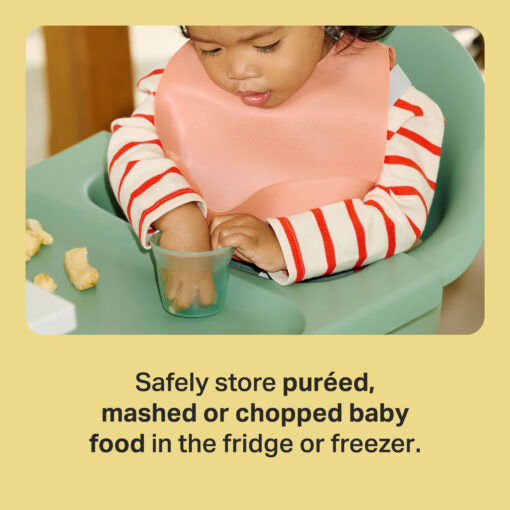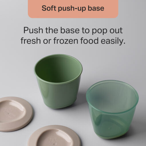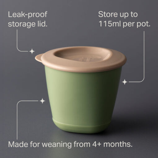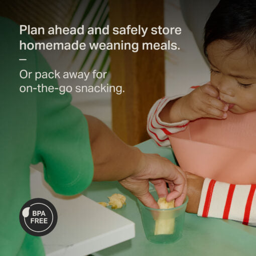 The push-up base makes it easy to pop out portions as required, and they are stackable so they can be kept neat and tidy in your fridge or freezer. Weaning can be a messy adventure, so we make things simple with these easy-to clean pots. Use them in the fridge, freezer or microwave then simply wash with hot soapy water or pop them in the top of your dishwasher. They can be sterilised for extra reassurance. Suitable for babies 4m+. Always BPA-free for your ultimate reassurance.