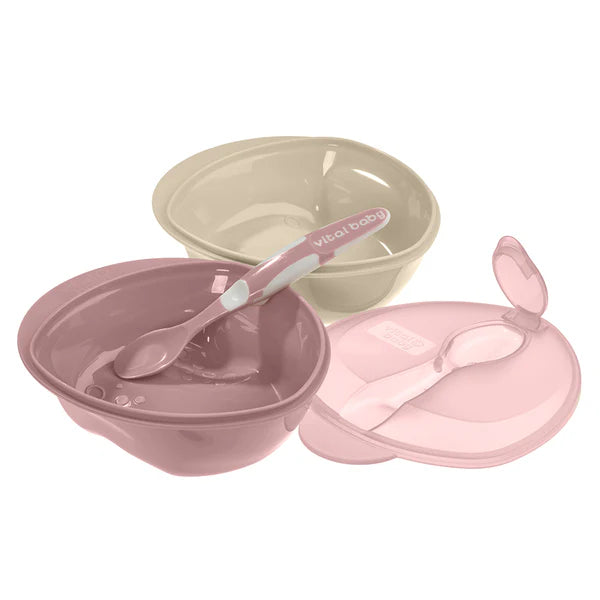 With scooped sides and built-in channels, this set makes it super easy for both parents and babies to scoop up every last drop of food. The ergonomic design of the bowl feels comfy in your hand while you feed. Plus, the integrated mashing zone on the base lets you tailor food textures to suit your baby’s stage. Just press cooked food or soft fruit against the mashing area with the spoon.