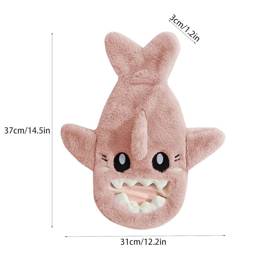 WARM WATER BAG: The cute shark hot water bottle is made of soft polyester. It can contain 500 ml or 1 liter of water. However, we recommend that you do not completely fill up the water.DESIG: The winter hot water bag features cute plush animal shape, with hand-warm pocket, you will love this lovely warm hot bag.