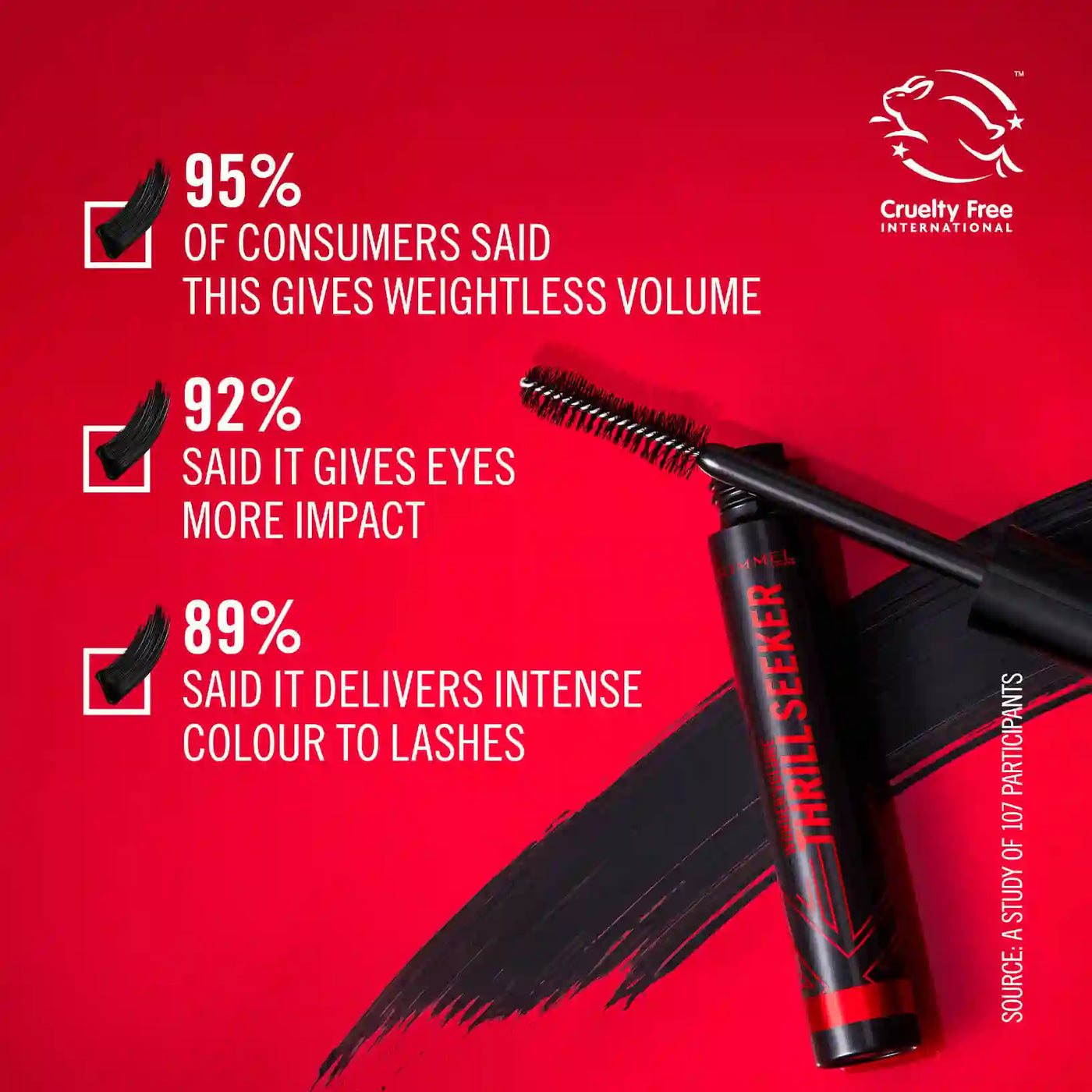 Bold volume just got intense, with Rimmel London's Wonder'Volume Thrill Seeker Mascara now in Pitch Black. A Rimmel mascara that's supercharged with intense ultra-black pigments for pitch black lashes with the boldest volume.